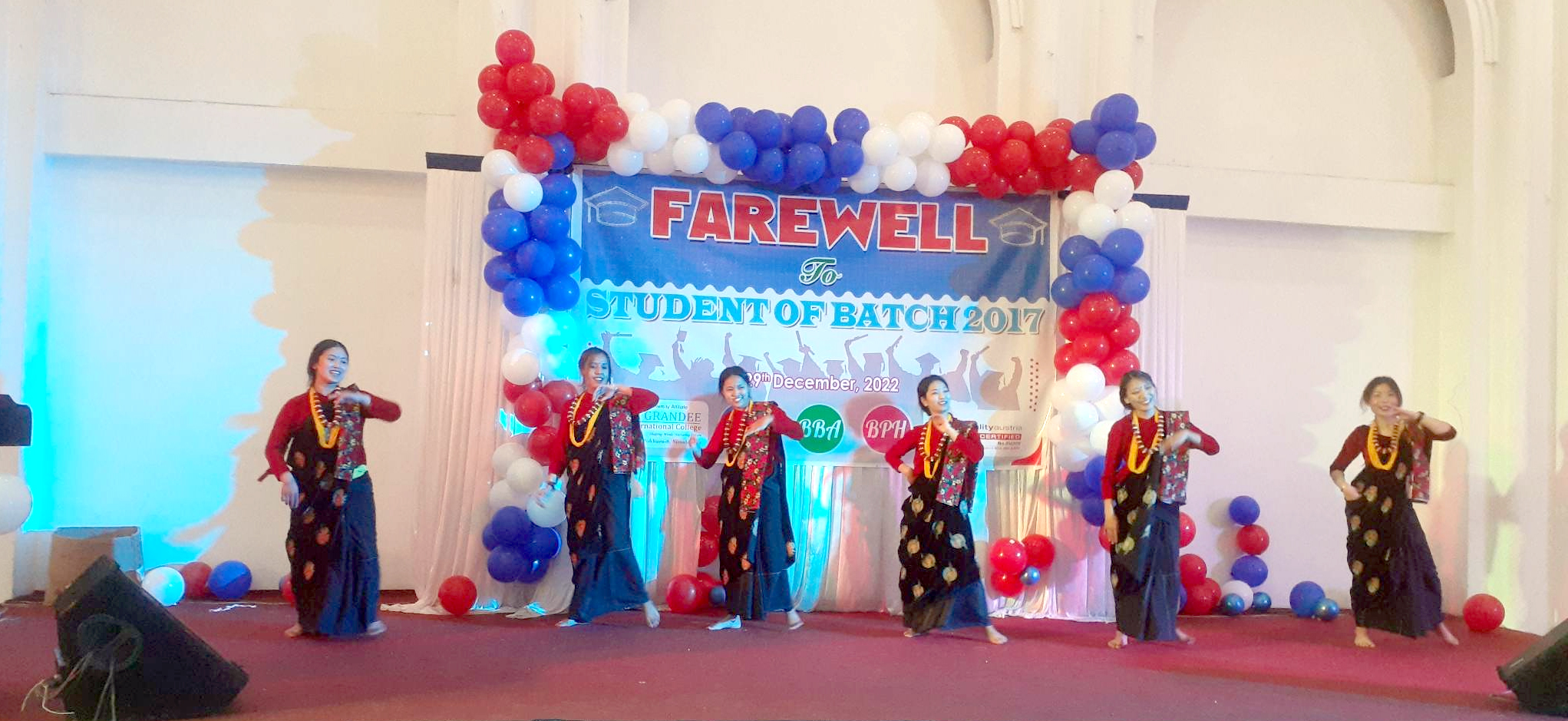 पोखरा । पोखरा ८ सिमलचौर स्थित ला– ग्रान्डी इन्टरनेसनल कलेजमा २०१७ मा भर्ना भएका विद्यार्थीलाई बिदाइ गरिएको छ । ४ वर्षको अध्ययन पूरा गरेका उनीहरूलाई बिदाइ गरिएको कलेजले जनाएको छ । बिबिए, बिसिए र बिपिएच सातौं सेमिस्टर अध्ययनरत २०१८ मा भर्ना भएका विद्यार्थीले...