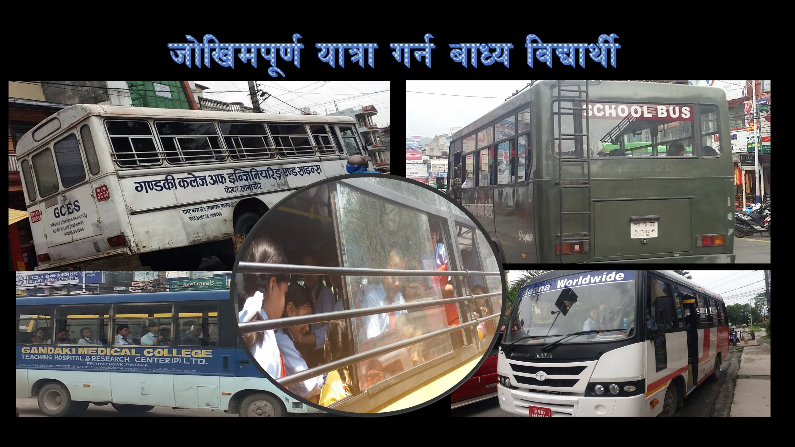 गोविन्द सुवेदी पोखरा । सरकारले विद्यालय बसलाई व्यवस्थित गर्न र विद्यार्थीलाई सहजका साथै सुरक्षीत आवागमनका लागि जारी गरेको स्कुल बस निर्देशिका २०७४ पोखराका नाम चलेका विद्यालयहरुले नै लागु गर्न आलटाल गरेका पाइएको छ । अधिकांस नाम चलेका विद्यालयले समेत अझैपनि...