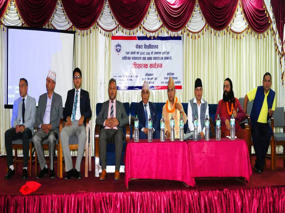 पेखरा । पोखरा विश्वविद्यालयमा व्यक्तिगत रूपान्तरण तथा तनाव व्यवस्थापन प्रशिक्षण कार्यक्रम सम्पन्न भएको छ । विश्वविद्यालयले रजतजयन्तीको अवसरमा सोमबार उक्त कार्यक्रम गरिएको हो । उक्त कार्यक्रममा आफ्नो मन्तव्य राख्दै उपकुलपति प्राडा प्रेम नारायण अर्यालले...