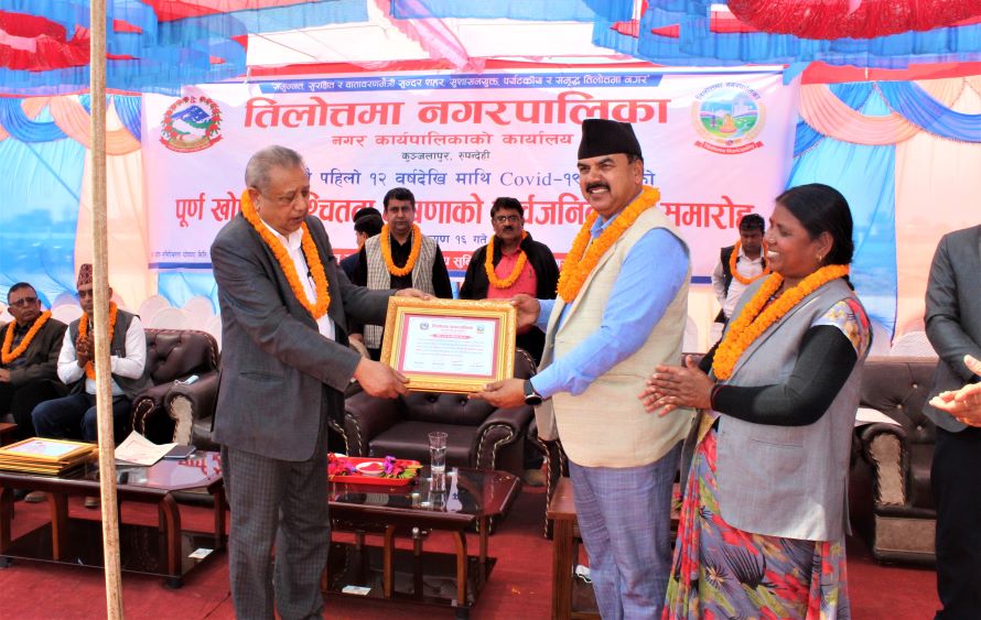 रुपन्देही । रुपन्देहीको तिलोत्तमा नगरपालिकालाई कोरोना विरुद्धको पूर्णखोप सुनिश्चितता घोषणा गरिएको छ । १२ वर्षमाथिका सबै नागरिकले कोरोना विरुद्धको खोप लगाएपछि तिलोत्तमालाई मुलुककैं पहिलो कोरोना विरुद्धको पूर्णखोप सुनिश्चितता घोषणा गरिएको हो । आइतबार...