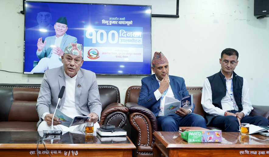 पोखरा । गण्डकी प्रदेश सरकारका सामाजिक विकास, युवा तथा खेलकुुद मन्त्री विन्दुुकुमार थापाले आफ्नो १०० दिनको उपलब्धी सार्वजनिक गरेका छन् । २०८१ जेठ १६ गते सामाजिक विकास तथा स्वास्थ्य मन्त्रालयको जिम्मेवारी सम्हालिसकेपछि १०० दिनमा आफुले गरेका महत्वपूर्ण...