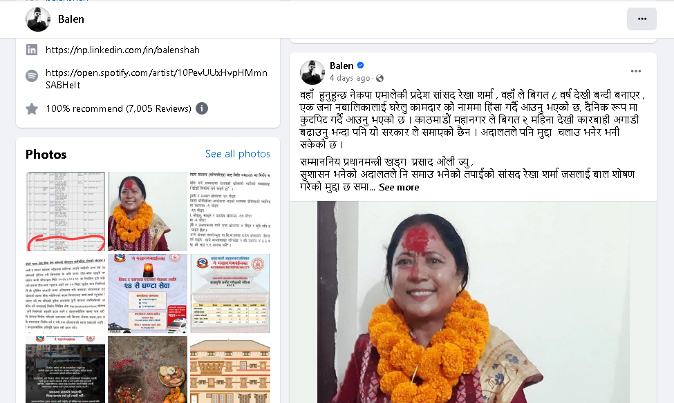 काठमाडौं । काठमाडौं महानगरका मेयर बालेन्द्र साहको फेसबुक पोष्ट फिर्ता भएको छ । एमालेकी प्रदेश सांसदलाई लक्षित गर्दै लेखेको पोस्ट फेसबुकले फिर्ता गरिदिएको हो । एमाले लुम्बिनी प्रदेश सांसद रेखाकुमारी शर्मालाई लक्षित गर्दै उनले लेखेको घरेलु बालश्रम...
