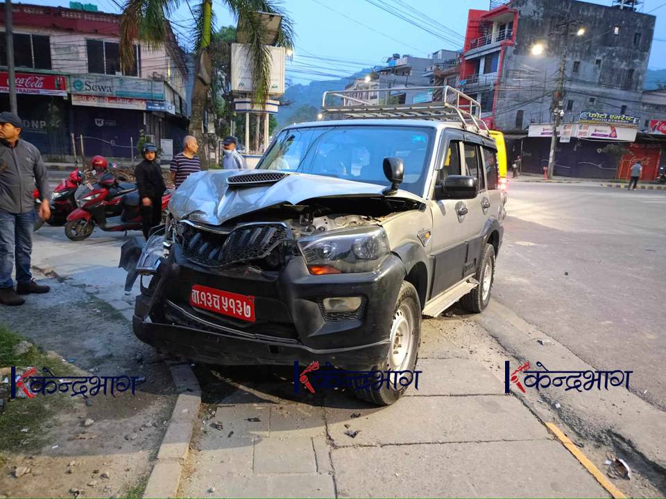 पोखरा । पोखराको राष्ट्रबैंक चोकमा हाइस र स्कार्पियो एक आपसमा ठोक्किँदा ८ जना घाइते भएका छन् । विहीबार विहान ४ः२० मा भएको दुर्घटनामा परेर घाइते भएका सबै चिनियाँ नागरिक रहेको जिल्ला प्रहरी कार्यालय कास्कीले दिएको छ । कास्की प्रहरी प्रमुख, प्रहरी उपरीक्षक...