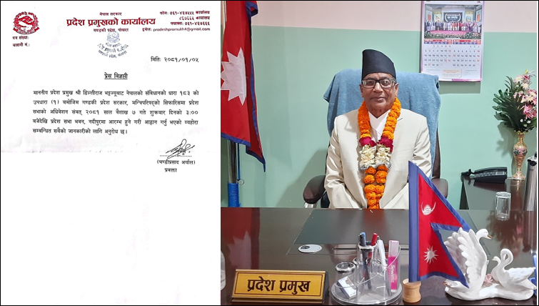 पोखरा । प्रदेश प्रमुख डिल्लीराज भट्टले आह्वान गरेको प्रदेश सभा अधिवेशन आज बस्दैँछ । आज (शुक्रबार) दिउँसो ३ बजे प्रदेश सभा भवन नदीपुरमा बैठक बस्नेछ । मन्त्रीपरिषद् बैठकको सिफारिसमा विशेष अधिवेशन डाकिएको हो । मंगलबारको मन्त्रीपरिषद् बैठकले अधिवेशन आह्वानको...