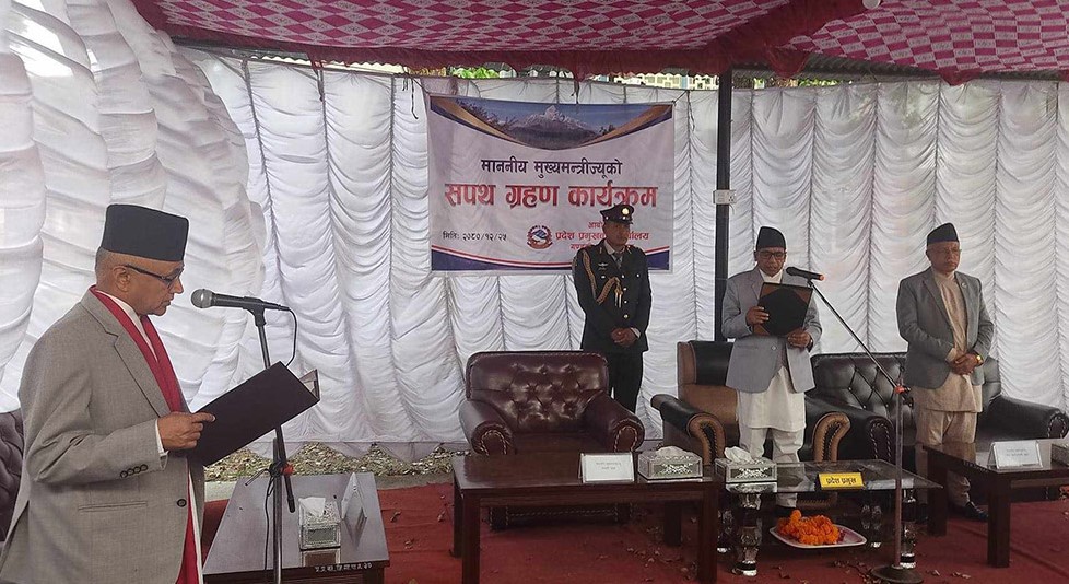 पोखरा । गण्डकी प्रदेशका मुख्यमन्त्री खगराज अधिकारीलेले शपथ लिएका छन् । प्रदेश प्रमुख डिल्लीराज भट्टले अधिकारीलाई पद तथा गोपनीयताको शपथ गराएका हुन् । एमालेका २२, माओवादी केन्द्र का ८ (सभामुखसहित) र नेकपा एकीकृत समाजवादीबाट राजिनामाको घोषणा गरेका दीपक...
