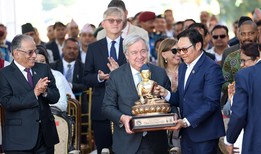 रुपन्देही । संयुक्त राष्ट्रसंघका महासचिव एन्टोनियो गुटेरेसले संसारभर भइरहेका द्वन्द्व अन्त्यका लागि लुम्बिनीबाट आव्हान गरेका छन् । मंगलबार बुद्ध जन्मस्थल लुम्बिनीको भ्रमणपछि आयोजित पत्रकार सम्मेलनमा उनले भने ‘संसारभर भइरहेका द्वन्द्व अन्त्यका लागि...