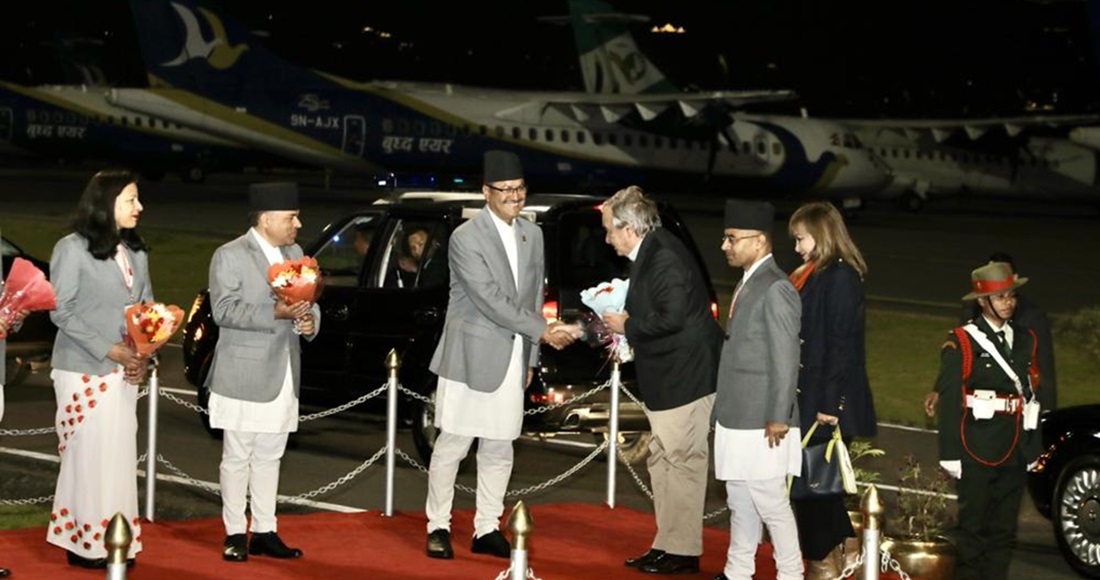 काठमाडौं । संयुक्त राष्ट्रसंघका महासचिव एन्टोनियो गुटेरेस नेपालको चारदिने औपचारिक भ्रमणका लागि गएराति काठमाडौँ आइपुगेका छन् । परराष्ट्रमन्त्री नारायणप्रकाश साउदले राति १ बजे त्रिभुवन अन्तर्राष्ट्रिय विमानस्थलको अतिविशिष्ट कक्षमा गुटेसेसलाई स्वागत...