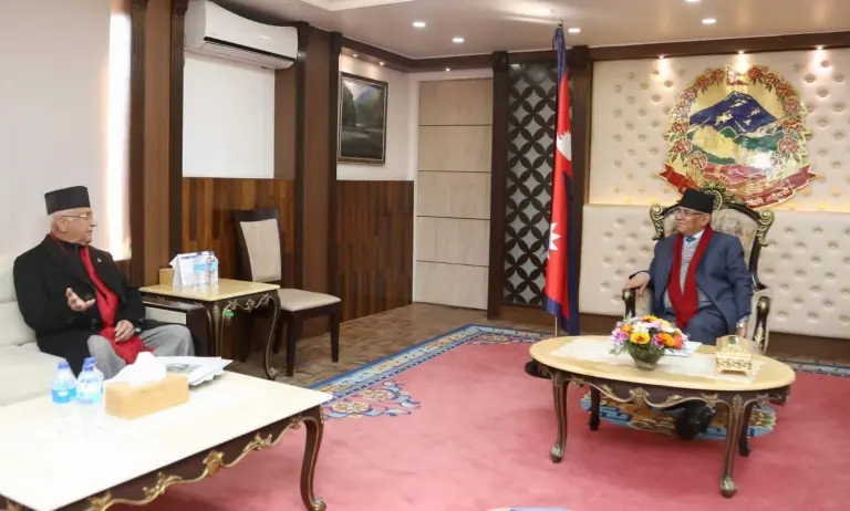 काठमाडौँ, । प्रधानमन्त्री पुष्पकमल दाहाल ‘प्रचण्ड’ र प्रमुख प्रतिपक्षी दलका नेता नेकपा (एमाले) का अध्यक्ष केपी शर्मा ओलीबिच भेटवार्ता भएको छ । सिंहदरबारमा आज भएको भेटवार्तामा उनीहरुबिच सङ्क्रमणकालीन न्यायसम्बन्धी विषयलाई टुङ्गोमा पुर्याउने तथा सदनमा...
