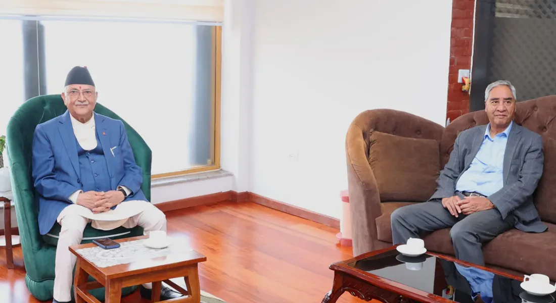 काठमाडौं। नेकपा एमालेका अध्यक्ष केपी शर्मा ओली र नेपाली कांग्रेसका सभापति शेरबहादुर देउवाबीच गत भदौ २३ र २४ को जेनजी आन्दोलन पछि आज पहिलो भेटवार्ता भएको छ । ओली देउवालाई भेट्न देउवा निवास महाराजगञ्ज पुगेका छन् । शुक्रबार दिउँसो ओली देउवा...