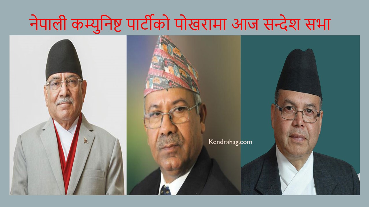 पोखरा । नेपाली कम्युनिस्ट पार्टी (नेकपा)ले आज आइतबार गण्डकी प्रदेशको राजधानी एवं देशकै पर्यटकीय राजधानी पोखरामा एकता सन्देश सभा गर्दैछ । सभामा पूर्वप्रधानमन्त्री त्रयसहितका नेताहरुले सम्बोधन गर्ने जनाइएको छ । संयोजक एवं पूर्वप्रधानमन्त्री प्रचण्ड,...