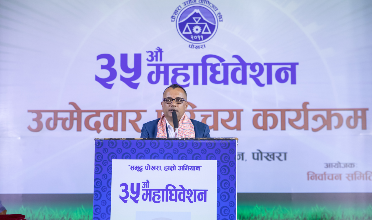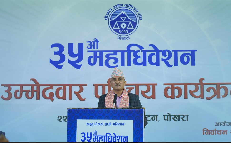 पोखरा । पोखराको जेठो संस्था पोखरा उद्योग वाणिज्य संघको ३५ औं महाधिवेशन यही भदौ २८ र २९ गते हुँदैछ । यस महाधिवेशनबाट नयाँ कार्यसमिति चयन हुने भएकाले नेतृत्वका लागि अर्जुन पोखरेल प्यानलसहित चुनावी प्रचारप्रसार लागेका छन् । अध्यक्षका प्रत्यासी अर्जुन पोखरेल...