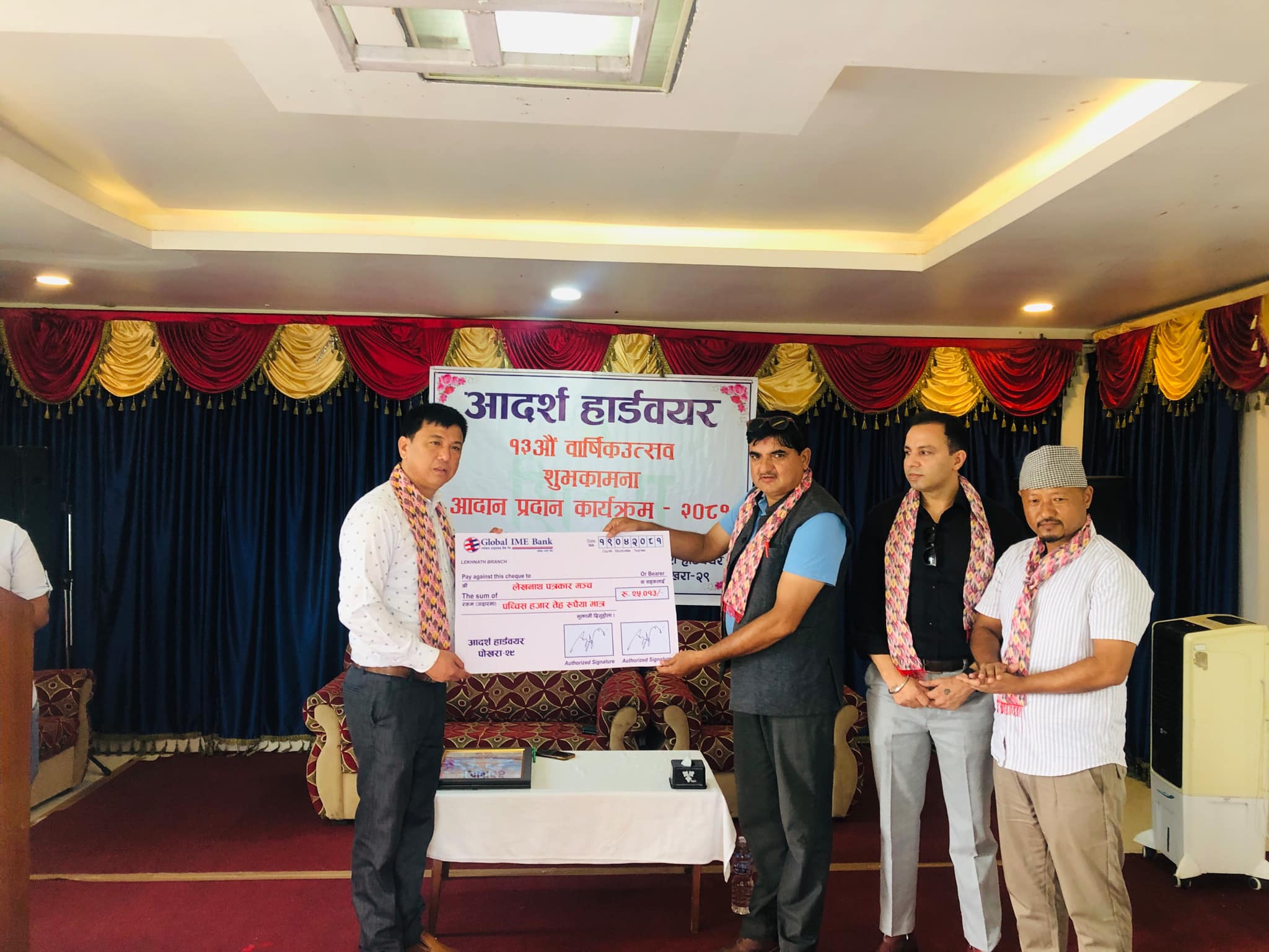 पोखरा । पोखरा महानगरपालिका वडा नं २९ को भण्डारढीकमा रहेको आदर्श हाडवर्यसको आफनो स्थापनाको १३ औं वार्षिकोत्सवका अवसरमा लेखनाथ पत्रकार मञ्चलाई सहयोग गरेको छ । मञ्चले स्थापना गरेको लेखनाथ पत्रकारीता पुरस्कारको कोष बृद्धिमा सहयोग पुग्ने गरि आर्दश हाडवर्यसका...