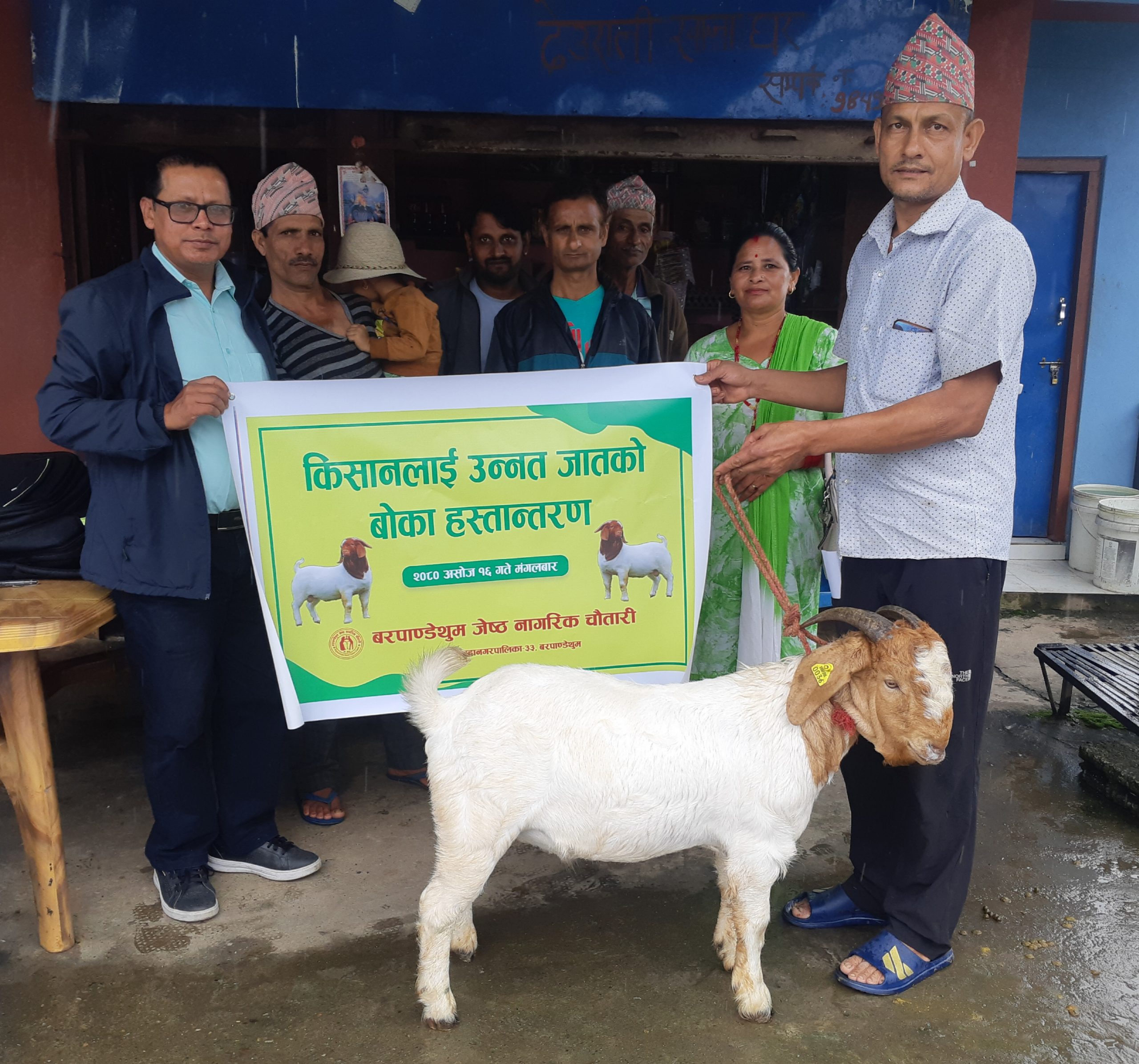 पोखरा । बरपाण्डेथुम जेष्ठ नागरिक चौतारीले पोखरा महानगरपालिका वडा नं. ३३ मा उन्नत जातको बोका हस्तान्तरण गरेको छ । जेष्ठ नागरिक सीप विकास कार्यक्रम अन्तरगत वडाका उद्यमशील किसान तिलकराज आचार्यलाई उन्नतजातको बोका हस्तान्तरण गरेको हो ।बाख्रा पालनबाट...