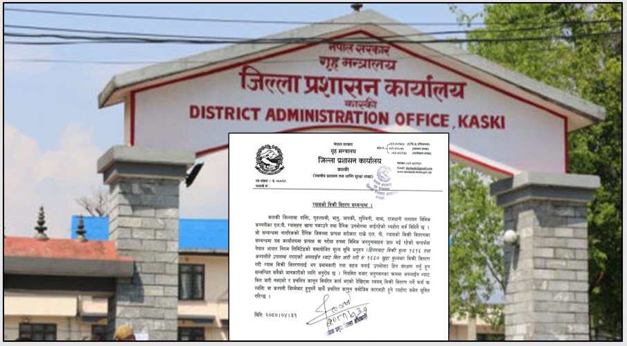 पोखरा । जिल्ला प्रशासन कार्यालय कास्कीले खाना पकाउने एलपी ग्यास १६६० रुपैयाँमा विक्री वितरण गर्न आग्रह गरेको छ । ग्याँसको मुल्य घटेर आएपनि व्यवसायीले भने समायोजित भएको मुल्यमा नभई पुरानै मूल्यमा बेच्ने गरेको जनगुनासो आएको भन्दै जिप्रका कास्कीले आज(बुधबार)...