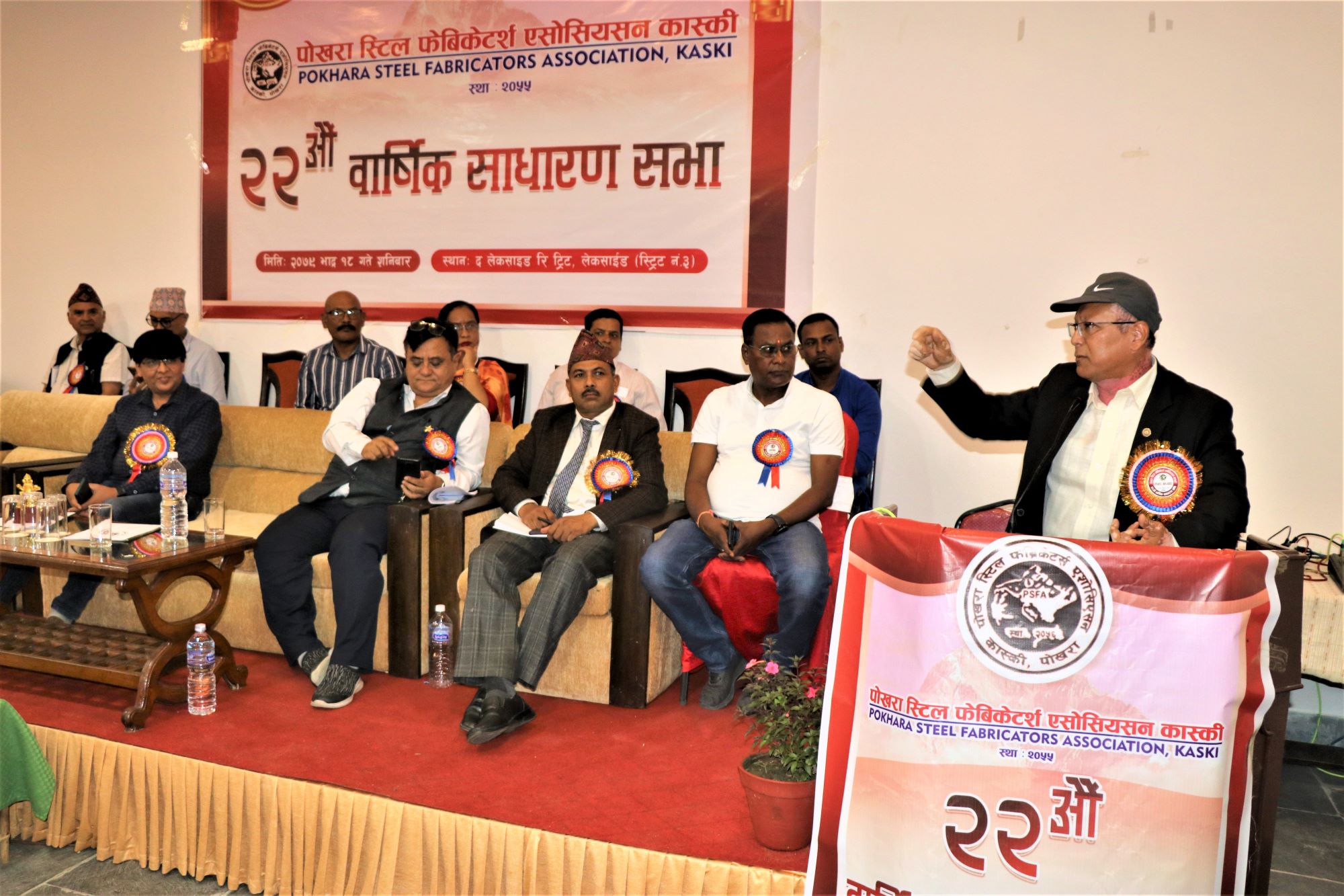 पोखरा । पोखरा स्टिल फेबिकेटर्श एसोसियसन कास्कीको २२ औँ साधारण सभा शनिबार पोखरामा सम्पन्न भएको छ । एसोसियसन का अध्यक्ष ई. विश्व प्रकाश कर्माचार्यको अध्यक्षताम भएको साधारण सभामा उद्योग, व्यापार तथा उपभोक्त हित संरक्षष्ण निर्देशनालय गण्डकीका निमित्त निर्देशक...