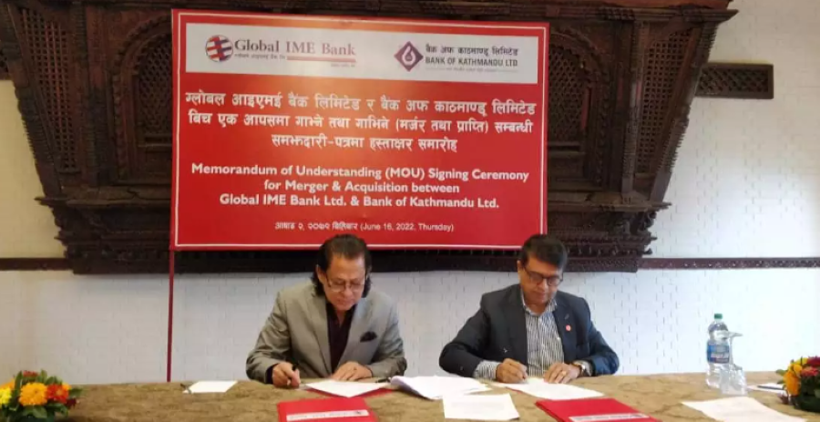 ग्लोबल आइएमइ बैंक र बैंक अफ काठमाण्डू गाभिने भएका छन्। दुबै बैंकका तर्फबाट बिहीबार बिहान याक एण्ड यति होटलमा समझदारी भएको छ। आज मर्जर सम्झौता भएसँगै दोस्रो बजारमा शेयर कारोबार रोकिने छ । दुबै बैंकबीच बराबरी हैसियतमा मर्जर सहमति भएको हो। मर्जर सहमतिपत्रमा...
