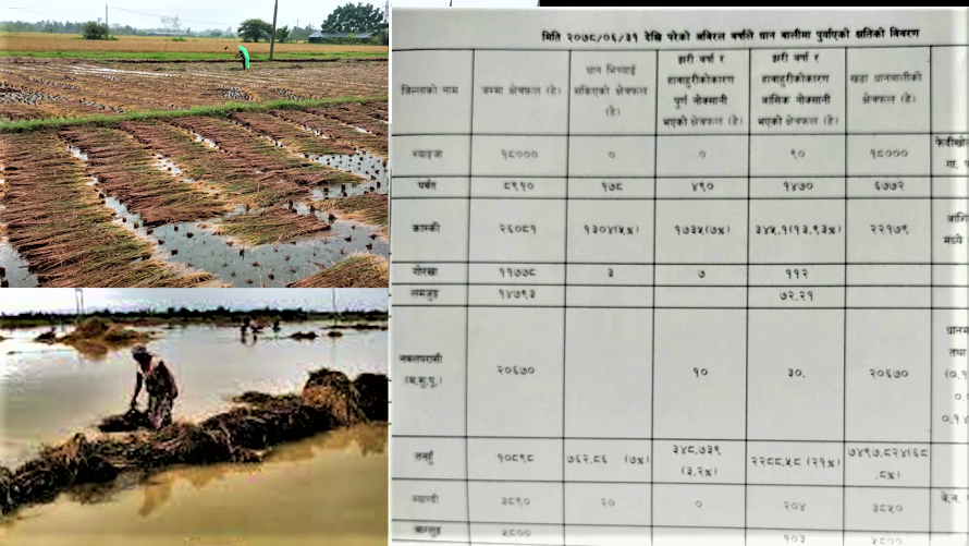पोखरा । गण्डकी प्रदेशमा दुई हजार पाँच सय ९१ हेक्टरमा लगाइएको धानवाली पूर्णरुपमा क्षति भएको छ । प्रदेश कृषि विकास निर्देशनालयले दिएको जानकारी अनुसार प्रदेशमा चार हजार ७१५ हेक्टरमा लगाइएको धानबालीमा आंसिक क्षेती भएको छ । प्रदेश कृषि विकास निर्देशनालय गण्डकीका...