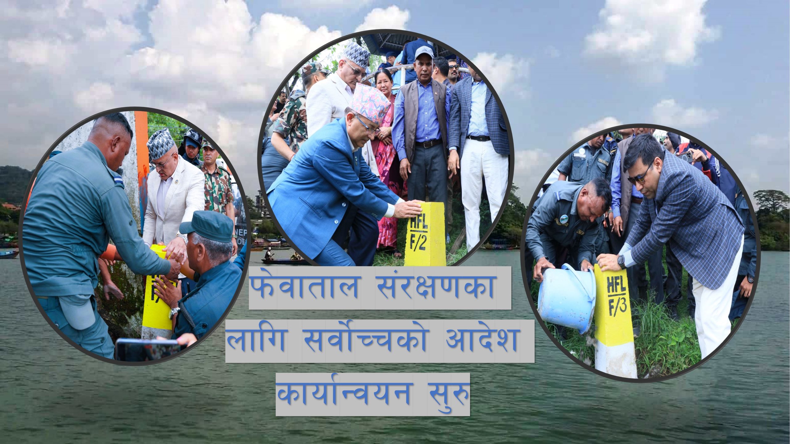 पोखरा । फेवा तालको संरक्षणका लागि सर्वोच्च अदालतले दिएको निर्देशनात्मक आदेश बमोजिम फिल्डमै काम सुरु भएको छ । फेवातालको सिमाना (तालघर) मा शनिबार गण्डकीका मुख्यमन्त्री सुरेन्द्रराज पाण्डे, पोखरा महानगरका प्रमुख धनराज आचार्य र कास्कीका प्रमुख जिल्ला अधिकारी...