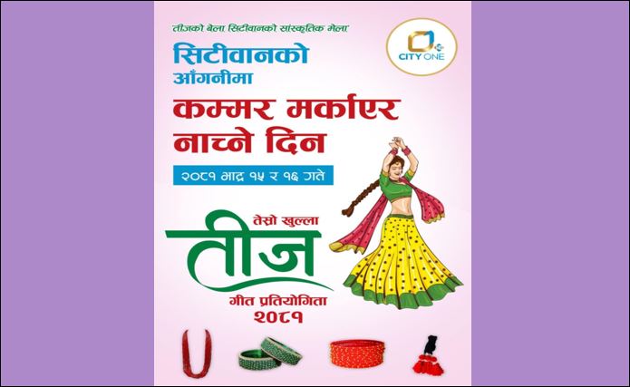 पोखरा । गण्डकी प्रदेशको राजधानी पोखरामा मुख्य कार्यालय रहेको सटीवान टेलिभिजनले महिलाहरुको महान चाड तीजलाई मध्यनजर यस वर्ष पनि साँस्कृतिक तीज गीत प्रतियोगिता गर्ने भएको छ । 'तीजको वेला सिटीवानको साँस्कृतिक मेला, तेस्रो खुल्ला तीज गीत प्रतियोगिता–२०८१’...