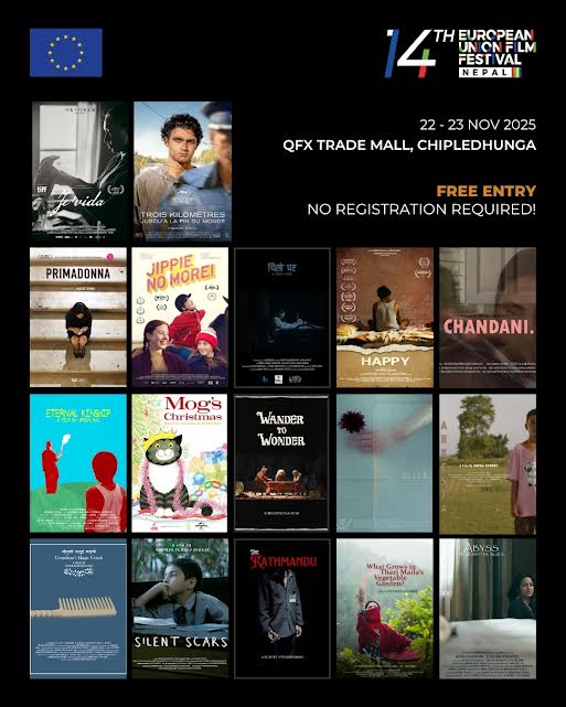 पोखरा । १४ औँ युरोपेली संघ चलचित्र महोत्सव नेपाल २०२५ को तयारी पुरा भएको छ । यहि मंसिर ६ र ७ गते पोखराको ट्रेडमलमा महोत्सव आयोजना हुने बताइएको छ । महोत्सवको भोलि मंसिर ५ गते साँझ उद्घाटन हुने भएको छ । महोत्सवको पहिलो दिन ६ गते शनिबार दिउँसो २ बजे ब्रिटिश...