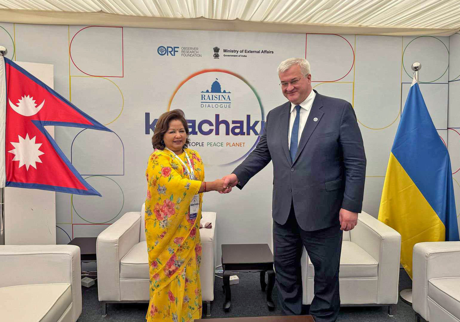 काठमाडौं । परराष्ट्रमन्त्री डा आरजु राणा देउवा र युक्रेनका विदेशमन्त्री एन्द्री सिबिहाबीच नयाँ दिल्लीमा द्विपक्षीय भेटवार्ता भएको छ । भारतीय विदेश मन्त्रालयद्वारा नयाँ दिल्लीमा आयोजित राइसिना डायलग कार्यक्रमका लागि त्यहाँ रहेका उनीहरुबीच आज सो भेटवार्ता...