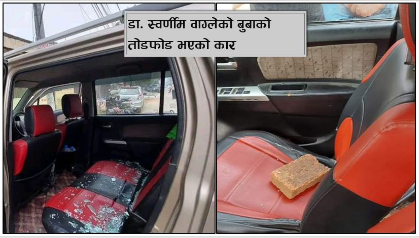 पोखरा । आगामी उपनिर्वाचनमा तनहुँ १ मा रास्वपाबाट उम्मेदवार उठेका डा. स्वर्णिम वाग्लेका बुबा जीवन वाग्ले चढ्ने कार तोडफोड भएको छ । तनहुँको व्यास नगरपालिका(३ दमौली बजारस्थित सन्तोष होटलअगाडि रोकिराखेको कार गएराती तोडफोड भएको बताइएको छ। बा ११ च ४२५० नम्बरको...