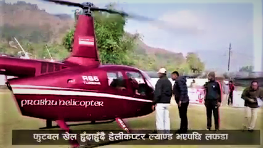पोखरा । वालिङ नगरपालिकामा प्रभु हेलिकोप्टरका क्याप्टेन रमेश डंगोलमाथि हातपात भएको छ । डंगोलले फुटबल खेल चलिरहेको बेला मैदानमा हेलिकप्टर ल्याण्ड गरे पछि युवाले हातपात गरेका हुन् । उनीहरुको कुटाइबाट क्याप्टेन डंगोलको नाक तथा मुखबाट रगत निस्केको छ । अवतरण...
