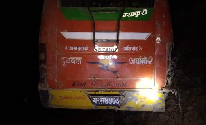 पोखरा । पाल्पाको रैनादेवि छहरा गाउँपालिका वडा नं ८ खुर्सानेमा भएको सवारी दुर्घटनमा ६ जनाको ज्यान गुमेको छ । पाल्पाका प्रमुख जिल्ला अधिकारी जगन्नाथ पन्तका अनुसार विहिबार राति १० : १५ बजे दुर्घटना भएको हो । दुर्घटनामा परेर १८ जना घाइते भएका छन्...