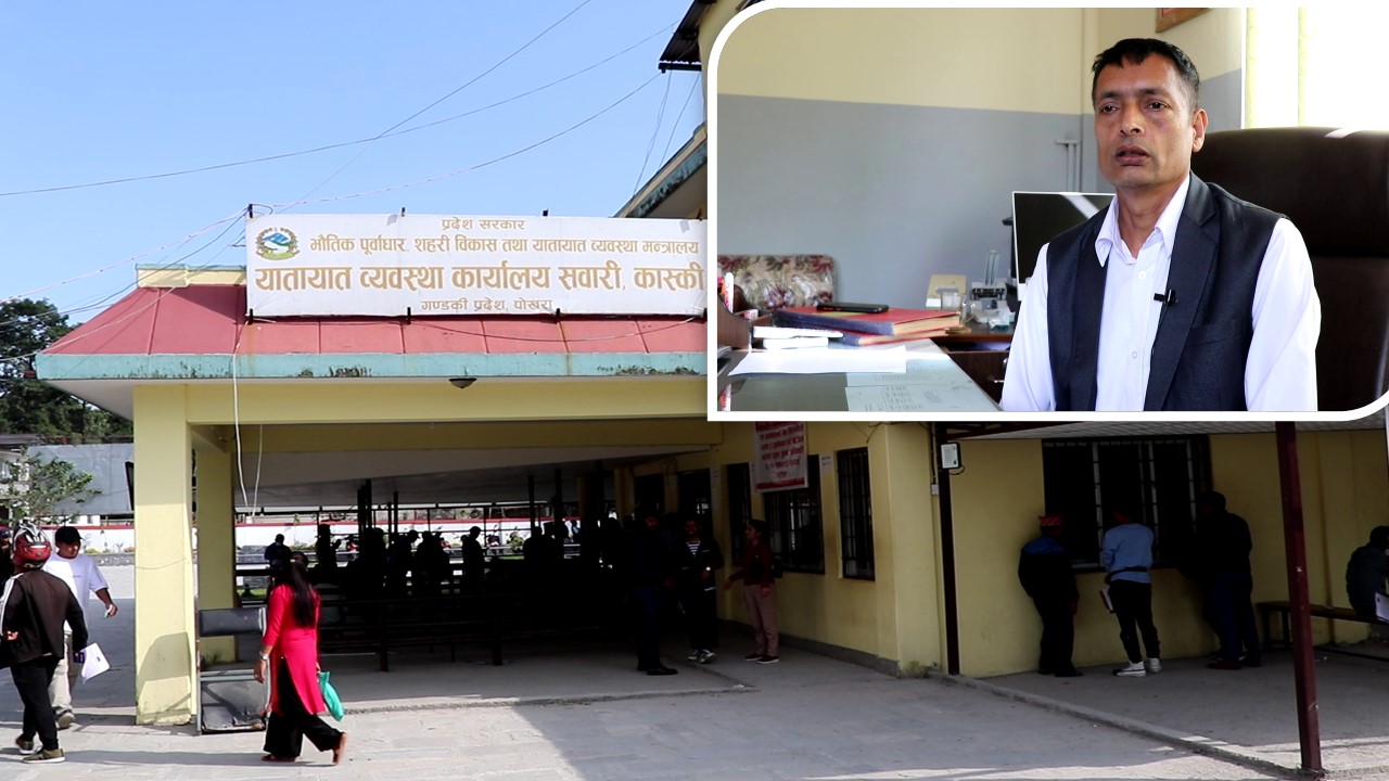पोखरा । यातायात व्यवस्था कार्यालय सवारी कास्कीमा एउटा कामका लागि तीन वटा लाइन बस्नुपर्ने झन्झट बाट सेवाग्रही मुक्त भएका छन् । बुधबारबाट एकै ठाउँबाट कर तिर्ने व्यवस्था मिलाइएको यातायात कार्यालय प्रमुख डिल्लीराम रिजालले जानकारी दिए । ‘कार्यालयमा आएपछि...