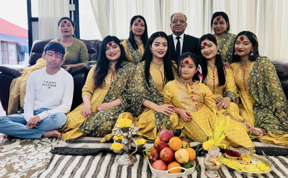 नेकपा माओवादी केन्द्रका अध्यक्ष पुष्पकमल दाहाल ‘प्रचण्ड’ले छोरी, बुहारी र नाति नातिनाहरूलाई आज दशैंको टीका लगाइदिएका छन्। प्रचण्डले खुमलटारस्थित निवासमा विजया दशमीको टीका लगाएका थिए । तस्बिरमा सबैको निधारमा रातो टीका देखिन्छ भने प्रचण्डको निधार भने...