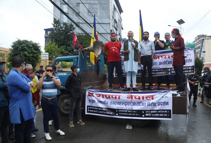 काठमाडौं । राप्रपा नेपाल प्रर्दशनमा उत्रिएको छ । प्रदेश संरचनाको खारेज लगायतका विभिन्न माग गर्दै राप्रपा नेपालका जनवर्गीय संगठनहरुले संयुक्त रुपमा विरोध प्रदर्शन गरेका हुन्। प्रदेश संरचना खारेज हुनुपर्ने, धर्मनिरपेक्षता खारेज गरि सनातन हिन्दु राष्ट्रको...