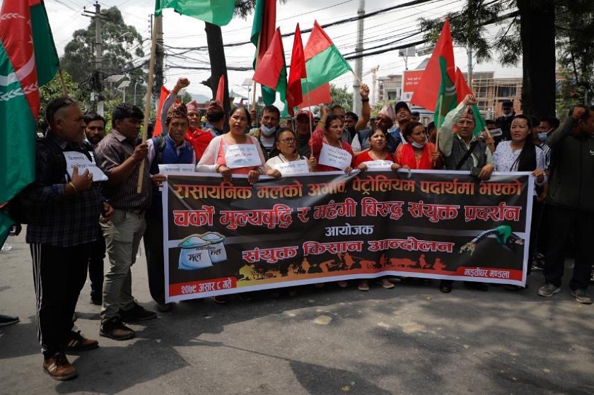 काठमाडौं । मल नपाएको भन्दै किसानहरुले माइतीघरमा सरकारविरुद्ध प्रदर्शन गरेका छन् । सरकार बाहिर रहेका एमालेसहित पाँच कम्युनिस्ट समर्थित किसान संगठनहरुले बुधबार माइतीघरमा सरकार विरुद्ध प्रदर्शन गरेका हुन् । हाल भइरहेको रासायनिक मलको अभाव, पेट्रोलियमको...