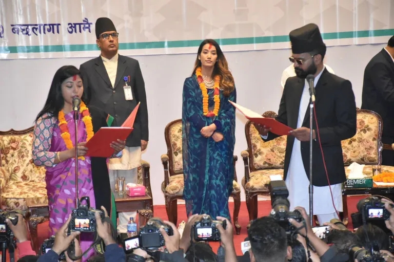 काठमाडौं । काठमाडौं महानगरपालिकाका प्रमुख बालेन्द्र शाह (बालेन) र उपप्रमुख सुनिता डंगोलले सपथ ग्रहण गरेका छन्। पद तथा गोपनियताको सपथ लिएपछि पदभार ग्रहण गर्ने कार्यक्रम रहेको छ। राष्ट्रिय सभा गृहमा जारी सपथ ग्रहण कार्यक्रममा ममानगरका प्रमुख, उपप्रमुख,...