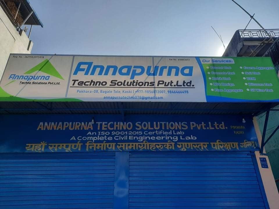 पोखरा । गण्डकी प्रदेशको राजधानी पोखरामा पहिलो पटक आइएसओ प्रमाणीत ( ISO 9001:2015 Material Testing civil) ल्याब संचालन मा आएको छ । अन्नपूर्ण टेक्नो सोलुसन्स प्रा लि . नामक उक्त ल्याब यहि आश्विन १ गते देखि सन्चालन मा आएको हो । उक्त ल्याबमा माटो परिक्षण...