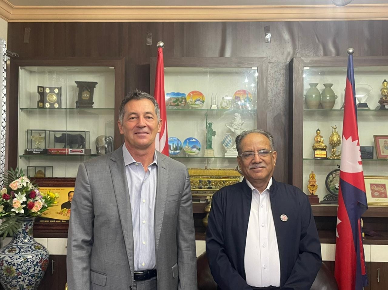 ललितपुर । नेपालका लागि अमेरिकी राजदूत रेन्डी बेरीले पूर्व प्रधानमन्त्री तथा नेकपा (माओवादी केन्द्र) का अध्यक्ष प्रचण्डसँग बिदाई भेटवार्ता गेका छन्। खुमलटारस्थित अध्यक्ष निवासमा आज बिहान भएको भेटवार्तामा अमेरिका र नेपालबीचको दुई पक्षीय सम्बन्धका बारेमा...