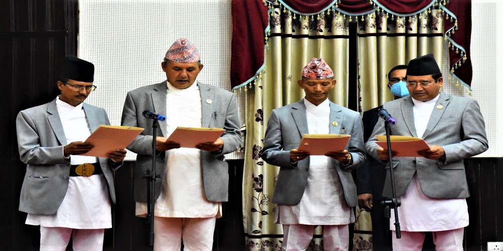 काठमाडौं । राष्ट्रपति विद्यादेवी भण्डारीसमक्ष नवनियुक्त चारजना मन्त्रीले सोमबार राष्ट्रपति भवनमा मन्त्री पदको पद तथा गोपनीयताको शपथ ग्रहण गरेका छन् राष्ट्रपतिसमक्ष शपथ लिने मन्त्रीहरूमा जीवनराम श्रेष्ठ संस्कृति, पर्यटन तथा नागरिक उड्डयन, मेटमणि चौधरी...