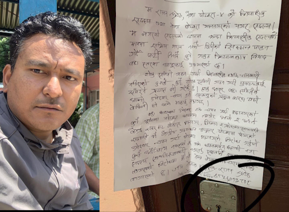 पोखरा । नेपाली कांग्रेस पाखरा महानगरपालिका कार्यालयमा नगर सदस्यले नै ताला लगाएका छन् । महानगर समितिले जिल्ला समितिमा ताला लगाउनुको औचित्य नरहेको भन्दै नगर सदस्य राजन श्रेष्ठले महानगर कार्यालयमा ताला लगाएका हुन् । उनले ध्यानाकर्षण पत्र कार्यालयको ठोकामा...