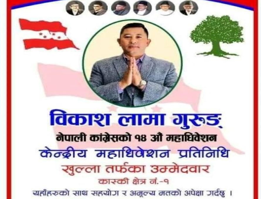पोखरा । नेपाली कांग्रेस कास्कीका युवा नेता विकाश लामा गुरुङले १४ औं महाधिवेशनमा केन्द्रीय महाधिवेशन प्रतिनिधिमा उम्मेदवारी घोषणा गरेका छन् । उनले गण्डकी कास्की क्षेत्र नम्बर १ बाट केन्द्रीय प्रतिनिधिमा उम्मेद्वारी घोषणा गरेका हुन् । गुरुङ विगत लामो...
