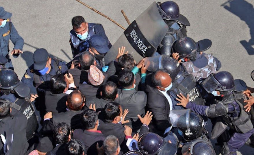 काठमगाडौं । प्रधानन्यायाधीशको राजीनामाको माग गर्दै आन्दोलित नेपाल बारका वकिलहरुले बिहीबार पनि सर्वोच्च अदालतमा धर्ना दिएका छन् । सो क्रममा प्रहरी प्रहरीले बल प्रयोग गरेको छ । प्रधानन्यायाधीशलाई अदालत प्रवेशमै अवरोध गर्नेगरी धर्नामा बसेका वकिलहरु मुख्य...