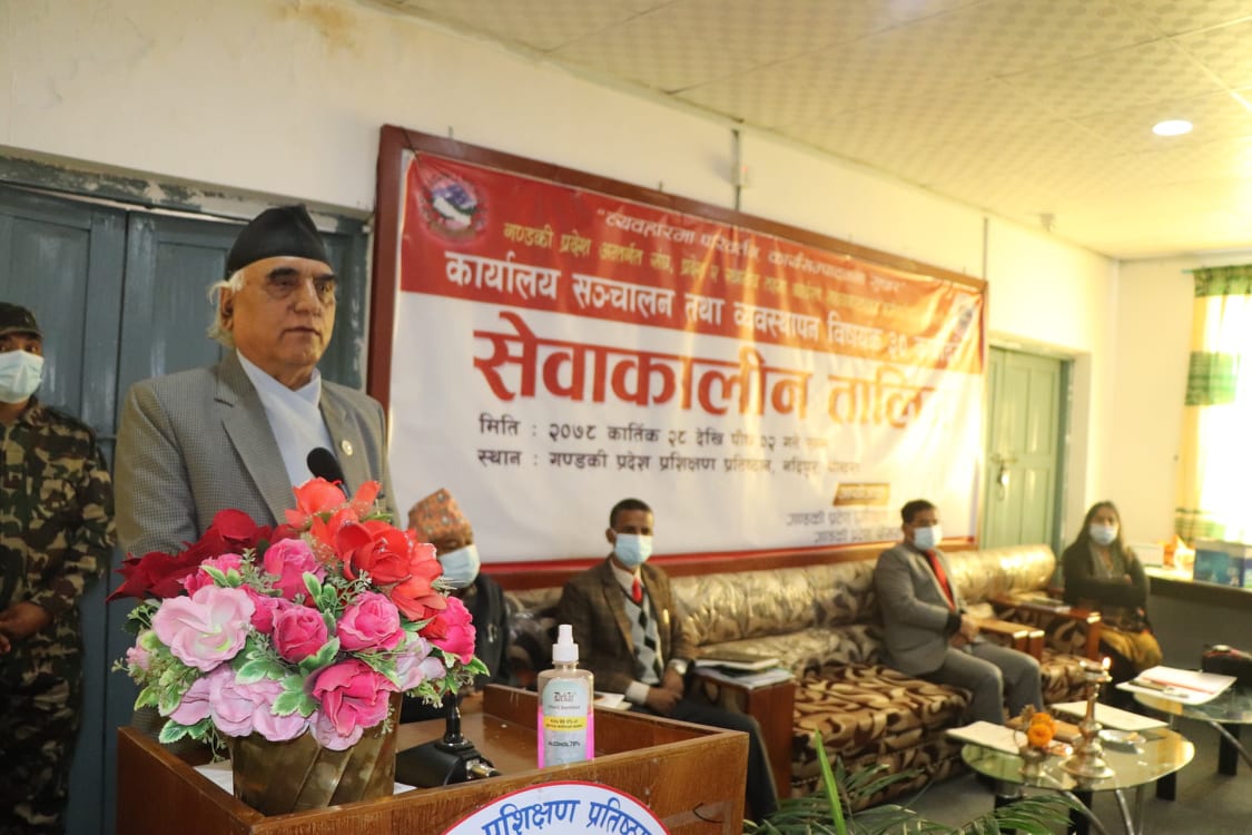 पोखरा। गण्डकी प्रदेशका मुख्यमन्त्री कृष्णचन्द्र नेपाली पोखरेलले सूचना प्रविधिको प्रयोग गर्दै सेवाग्राहीलाई छरितो रुपमा सेवा प्रदान गर्न कर्मचारीलाई निर्देशन दिएका छन् । गण्डकी प्रदेश प्रशिक्षण प्रतिष्ठानले चौंथो र पाँचौ तहका कर्मचारीका लागि गरेको सेवाकालीन...