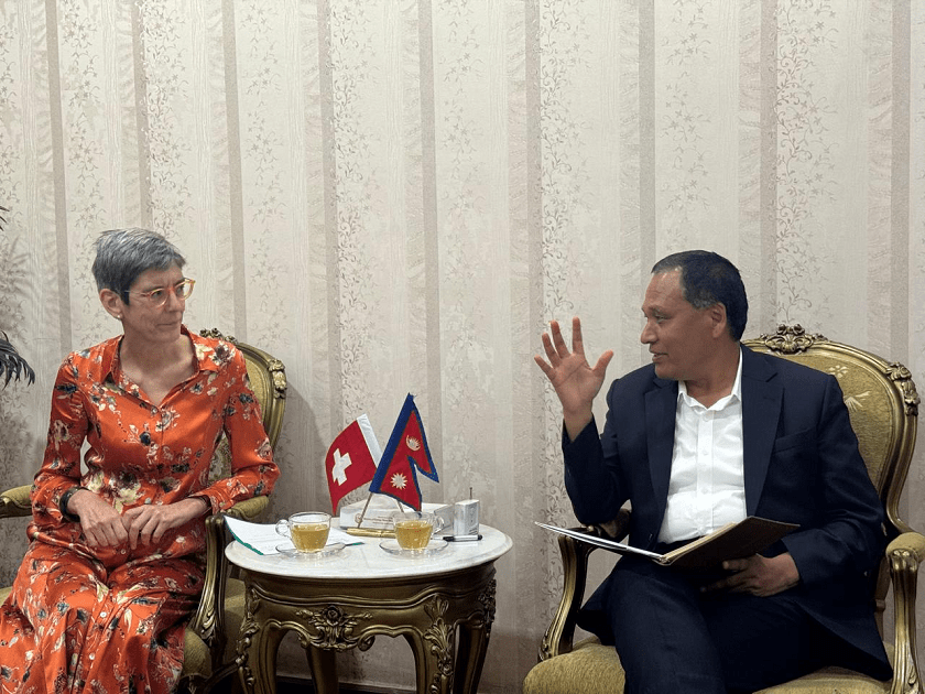 काठमाडौं । ऊर्जा, जलस्रोत तथा सिँचाइमन्त्री कुलमान घिसिङ र नेपालका लागि स्विट्जरल्याण्डका राजदूत डेनिएल मेउलीबिच शिष्टाचार भेटवार्ता भएको छ । बिहीबार सिंहदरबारस्थित ऊर्जा, जलस्रोत तथा सिँचाइ मन्त्रालयमा भएको भेटमा मन्त्री घिसिङलाई राजदूत मेउलीले स्विट्जरल्याण्डका...