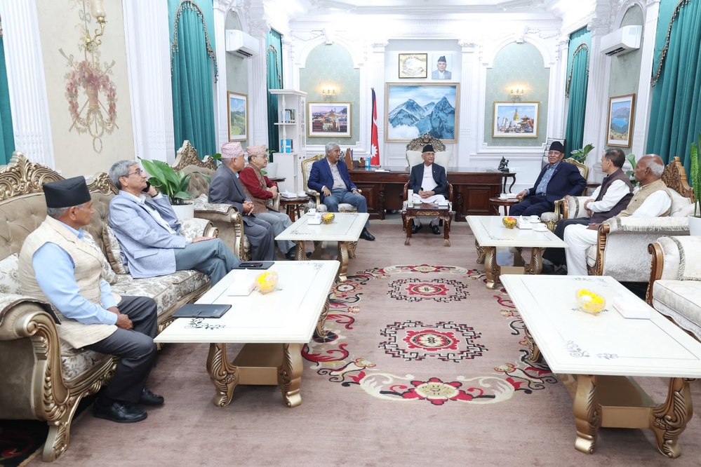 काठमाडौं । संसद्मा विपक्षी दलको अवरोधलगायतका विषयमा सिंहदरबारमा प्रमुख तीन दलका शीर्ष नेता छलफलमा जुटेका छन् । प्रधानमन्त्री केपी शर्मा ओलीको आह्वानमा प्रमुख दलका शीर्ष नेताहरूको छलफल जारी रहेको छ । प्रधानमन्त्री तथा मन्त्रिपरिषद्को कार्यालय, सिंहदरबारमा...