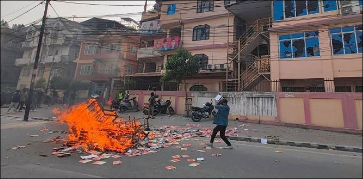 काठमाडौं । संघीय राजधानी काठमाडौंमा राजावादी प्रदर्शनकारीले तीनकुनेमा घरहरू तोडफोड र आगजनी गरेका छन् । विभिन्न ठाउँबाट र्यालीसहित तीनकुने पुगेर सभामा परिणत हुने भनिए पनि पहिले नै भीड भड्किएको हो । उनीहरूले तीनकुने सडक किनारमा रहेका घरहरूको सिसा फुटाउनुका...