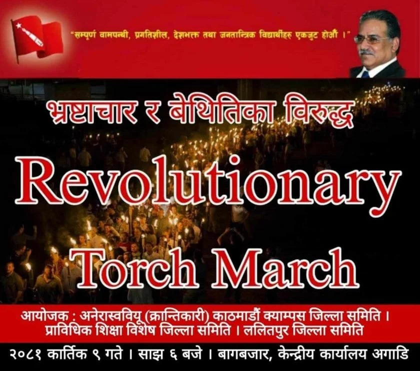काठमाडौँ । नेकपा माओवादी केन्द्र निकट अखिल क्रान्तिकारीले आज टर्च मार्च गर्ने भएको छ । पार्टीले भ्रष्टाचार र बेथितिका विरुद्ध कार्तिक १० गते काठमाडौँको भृकुटीमण्डपमा खबरदारी गर्ने घोषणा गरेपश्चात अखिल क्रान्तिकारी का विभिन्न तहका कमिटी सरकारविरुद्ध...