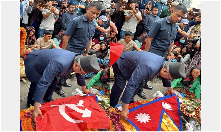 काठमाडौँ । रुकुमपूर्वको पुथा उत्तरगंगा गाउँपालिकाका उपाध्यक्ष भुपेन्द्रा बुढाको पशुपति आर्यघाटमा अन्त्येष्टि गरिएको छ । पूर्वप्रधानमन्त्री एवं नेकपा माओवादी केन्द्रका अध्यक्ष पुष्पकमल दाहाल प्रचण्डले राष्ट्रिय र पार्टीको झण्डा ओढाएर अन्तिम श्रद्धाञ्जली...