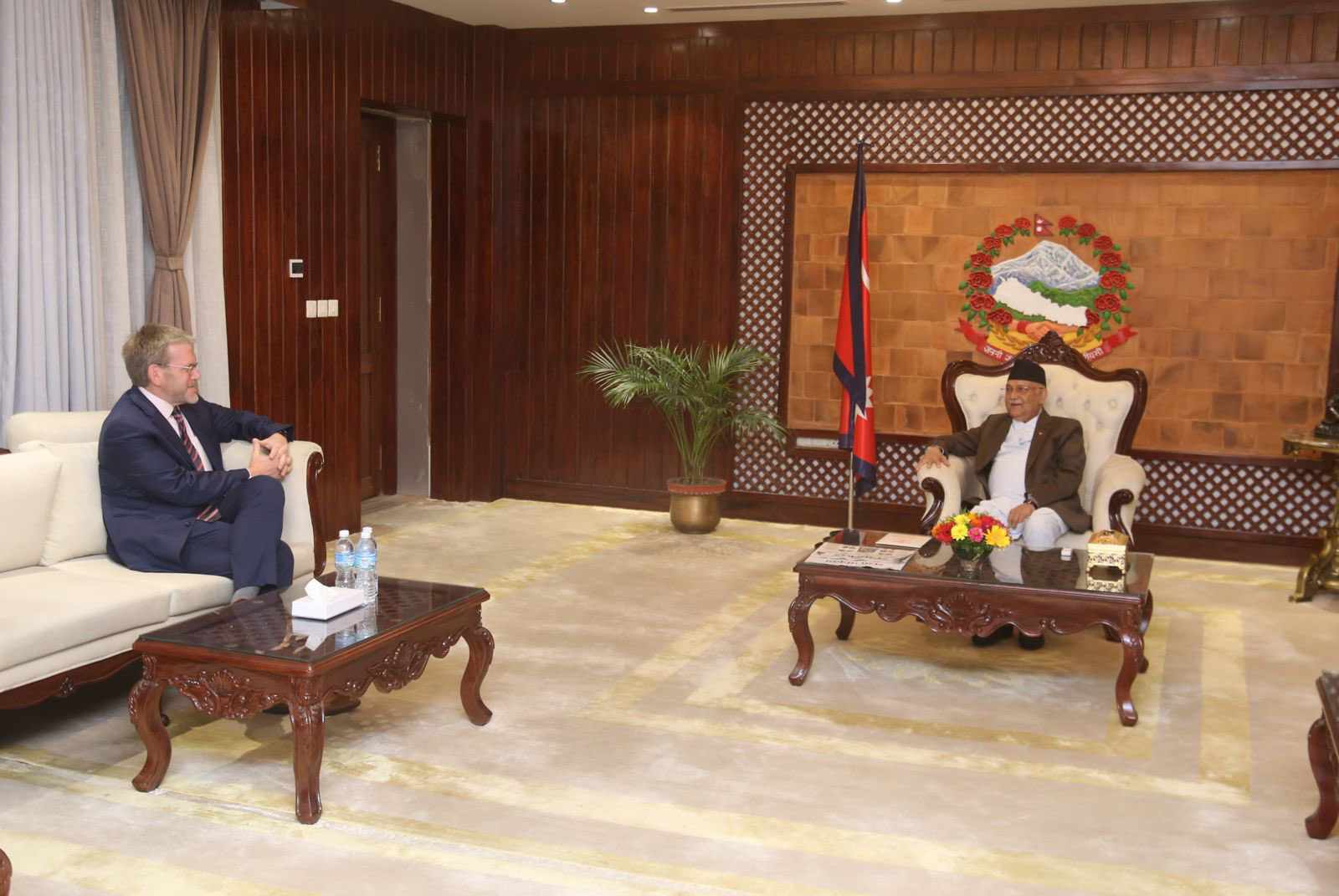 काठमाडौँ । प्रधानमन्त्री केपी शर्मा ओलीसँग अमेरिकी राजदूत डीन आर थोमसनले शिष्टाचार भेटवार्ता गरेका छन् । बुधबार बिहान प्रधानमन्त्री ओलीलाई भेट्न राजदूत थोमसन प्रधानमन्त्री निवास बालुवाटर पुगेका हुन् । भेटबारे जानकारी दिँदै राजदूत थोमसनले नवनियुक्त प्रधानमन्त्री...