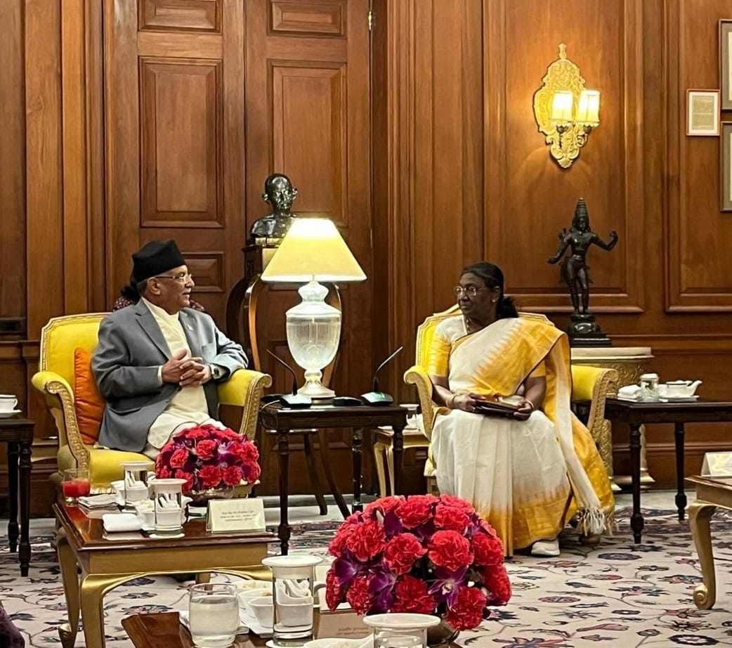 नयाँ दिल्ली। भारतको औपचारिक भ्रमणमा रहेका प्रधानमन्त्री पुष्पकमल दाहाल ‘प्रचण्ड’ले राष्ट्रपति द्रौपदी मुर्मुसँग शिष्टाचार भेट गरेका छन् । नयाँ दिल्लीस्थित राष्ट्रपति भवनमा आज प्रधानमन्त्री प्रचण्डले राष्ट्रपति मुर्मुसँग भेट गरेका हुन् । सो अवसरमा...