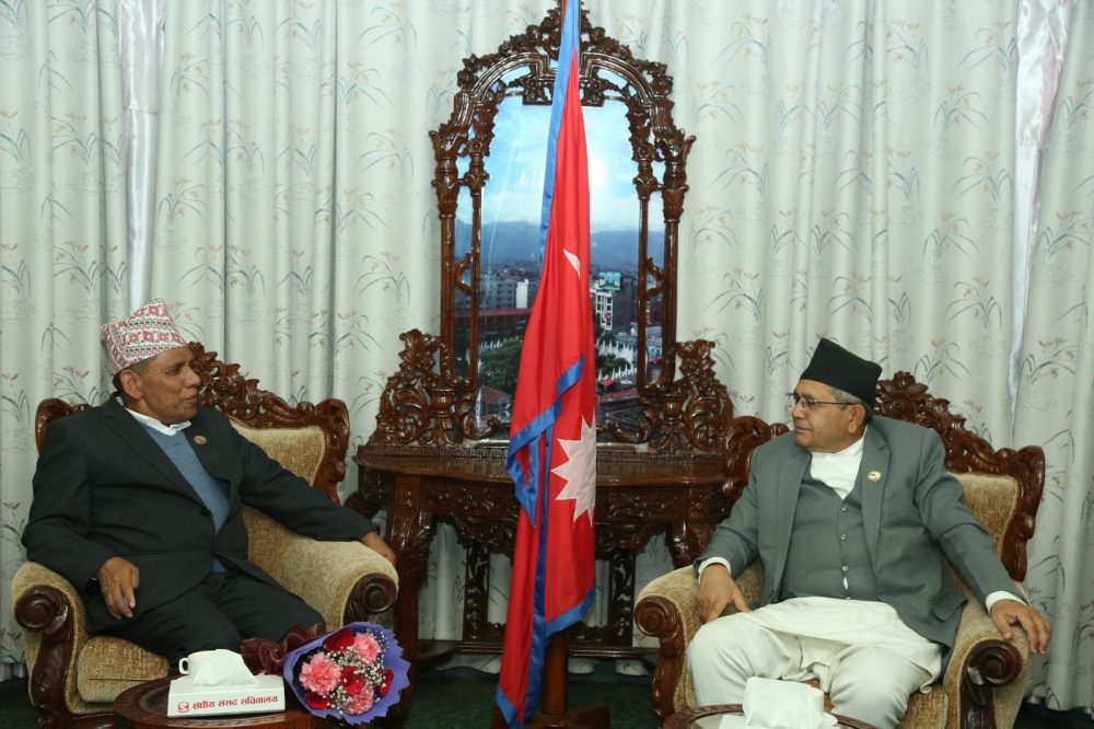 काठमाडौँ । प्रतिनिधि सभाका अध्यक्ष देवराज घिमिरे र राष्ट्रिय सभाका अध्यक्ष नारायण दाहालबीच भेटवार्ता भएको छ । सोमबार सिंहदरवारस्थित सभामुखको कार्यकक्षमा उनीहरुबीच भेटवार्ता भएको हो ।भेटवार्तामा सरकारको नीति तथा कार्यक्रमको तयारीका बारेमा कुराकानी भएको...