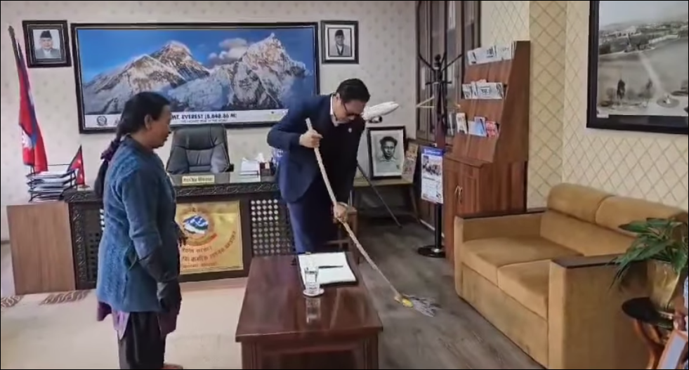 काठमाडौँ । संस्कृति, पर्यटन तथा नागरिक उड्डयन मन्त्री सुदन किरातीले मन्त्रालयको कार्यकक्षमा आफैँ पोछा लगाएको भिडियो सामाजिक सञ्जालमा अपलोड भएको छ । पत्रकार बालकृष्ण शर्माले आफ्नो फेसबुकमा मन्त्री किरातीले पोछा लगाउँदै गरेको भिडियो अपलोड गरेपछि भिडियोमा...