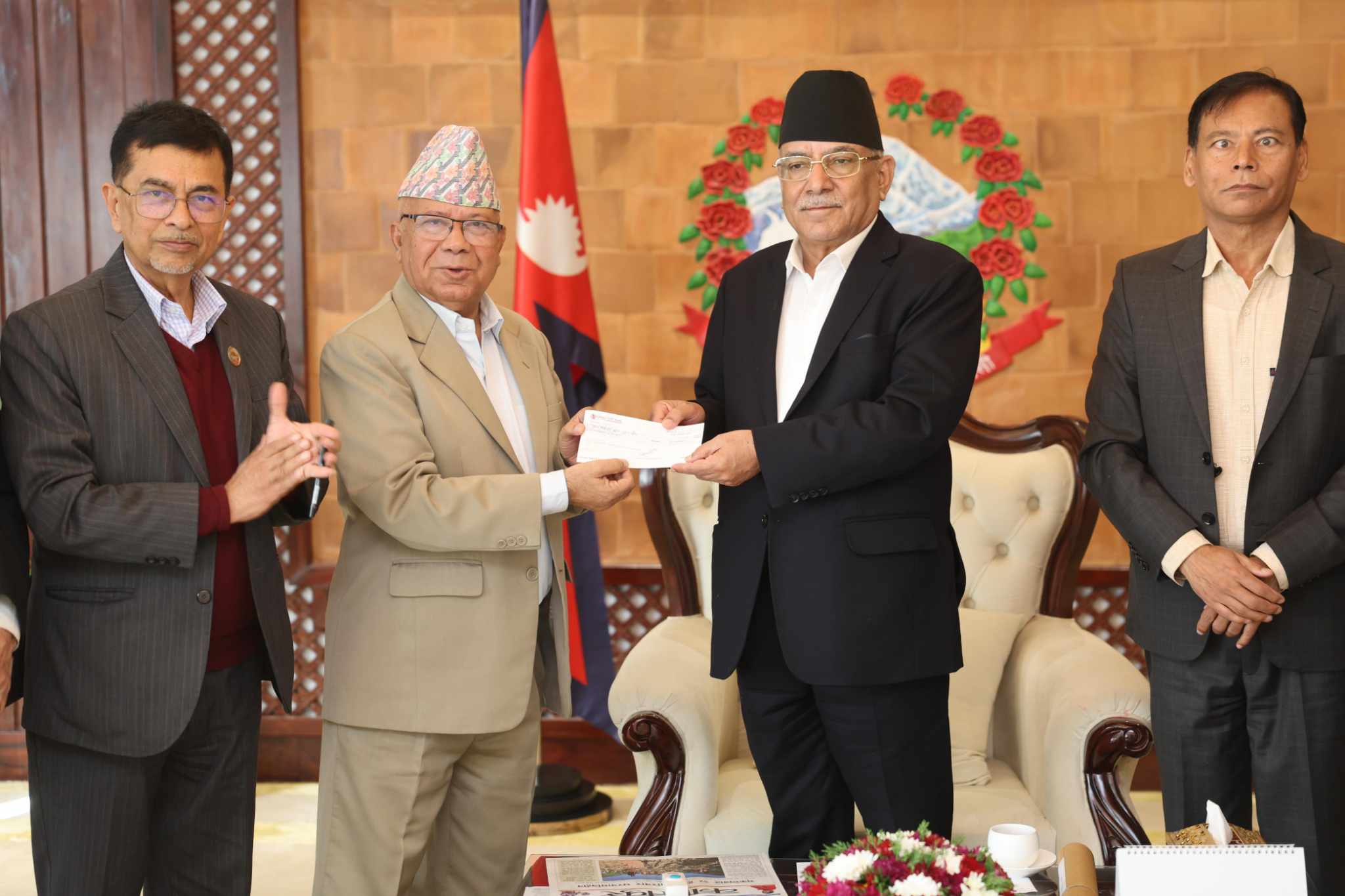 काठमाडौं । नेकपा माओवादी केन्द्रले पनि भूकम्पपीडितहरूको राहतका लागि रकम प्रदान गरेको छ । उपाध्यक्ष पम्फा भुसालसहितको टोलीले प्रधानमन्त्री पुष्पकमल दाहाल ‘प्रचण्ड’ लाई भेटेर प्रधानमन्त्री दैवी प्रकोप उद्धार कोषमा जम्मा गर्ने गरी ५० लाखको चेक हस्तान्तरण...